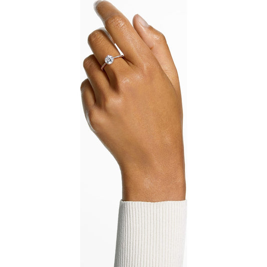 Anello Vittore taglio rotondo, bianco, strato lega oro rosa